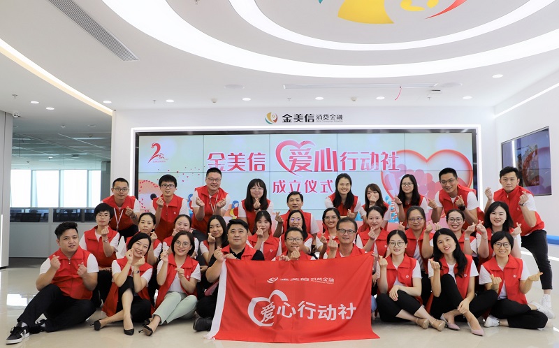 金美信消费金融“爱心行动社”是一支由金美信员工自发自愿成立的纯公益性团队。旨在让每一位员工都努力担当,积极行动,投身公益,以一颗至诚之心、慈善之心、奉献之心,给予那些需要帮助的群体更多的关怀与援助,代表金美信不断传递温暖,弘扬正能量。